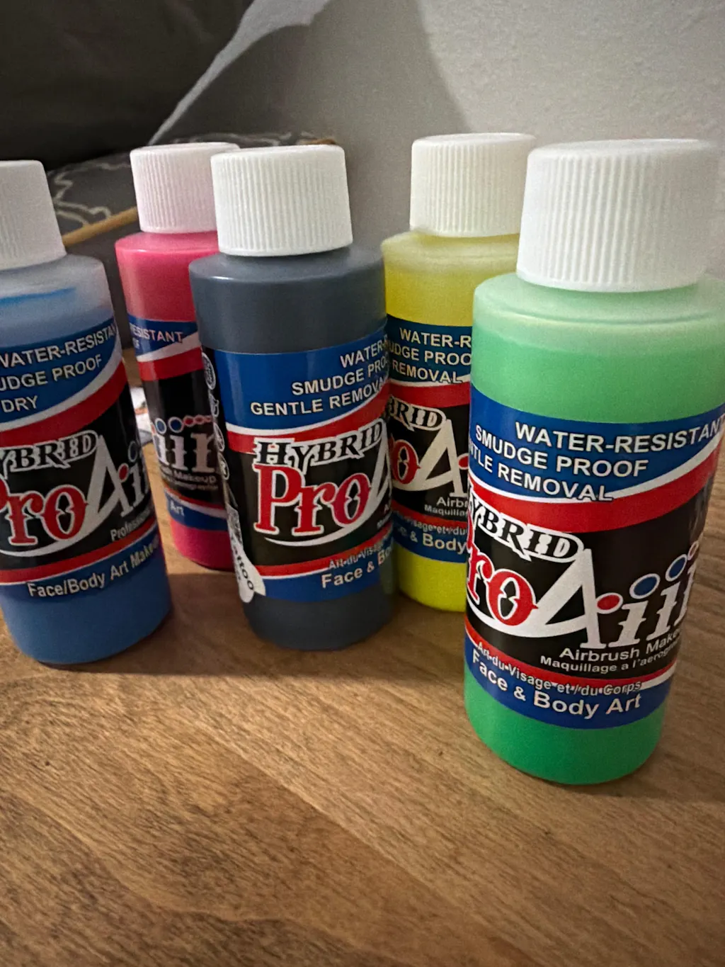 ProAiir Hybrid Water Resistant Makeup is the next generation for airbrushing and body painting. ProAiir Hybrid is fully Water Resistant, so under any condition, this makeup is going to hold up! The wear is durable, the shelf life is long, and because there is no water in formula, the pigment does not separate from the fluid. Removal of the product is easy: just use baby oil, makeup remover, or lather with liquid soap (no water), and then rinse with water. 2 ounce bottle