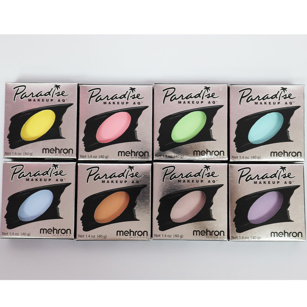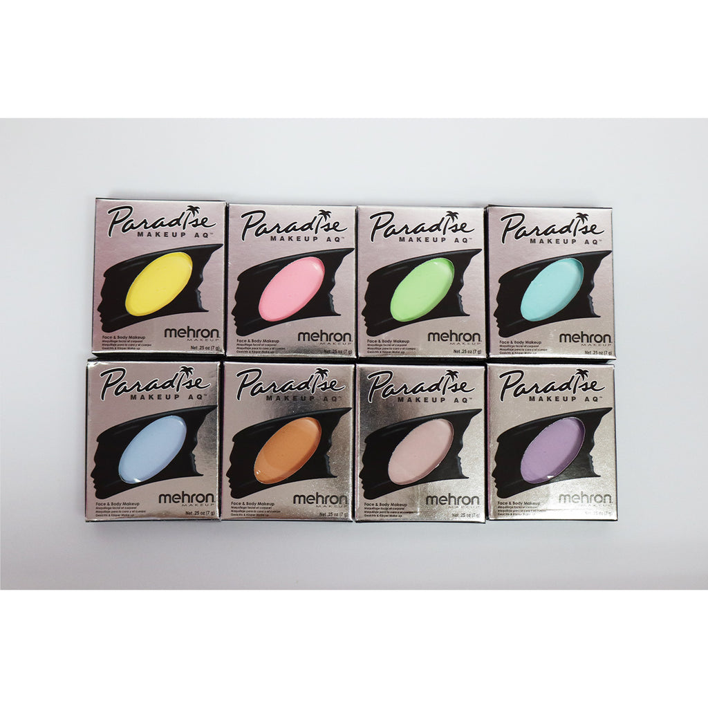The Mehron Paradise Makeup AQ Pastels contain the same iconic Paradise Makeup AQ formula that artists have come to love and trust, but with a new Pastel color scheme. Available colors are:
