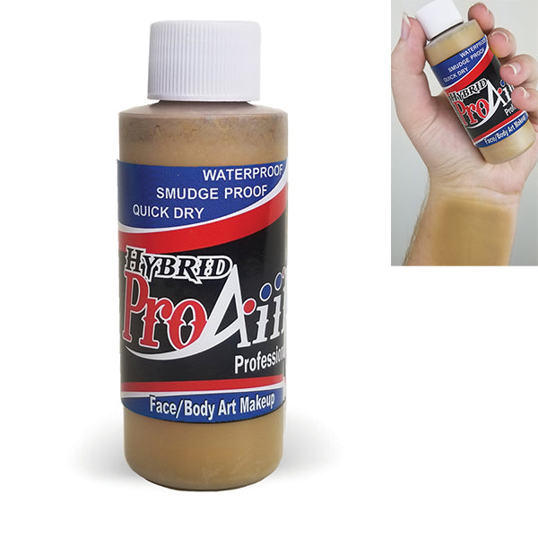 ProAiir Zombie Hybrid Water Resistant Makeup is the next generation for airbrushing and body painting. ProAiir Hybrid is fully Water Resistant, so under any condition, this makeup is going to hold up! The wear is durable, the shelf life is long, and because there is no water in formula, the pigment does not separate from the fluid. The Zombie line contains all of the colors to create deathly designs! Removal of the product is easy: just use baby oil, makeup remover, or lather with liquid soap (no water), and then rinse with water. 2 ounce bottle